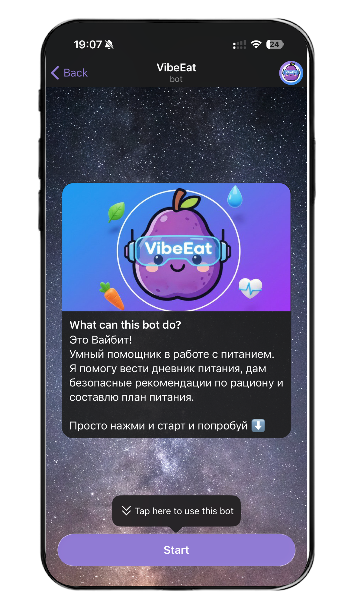 VibeEat – это сервис, который помогает работать с питанием с помощью искусственного интеллекта.